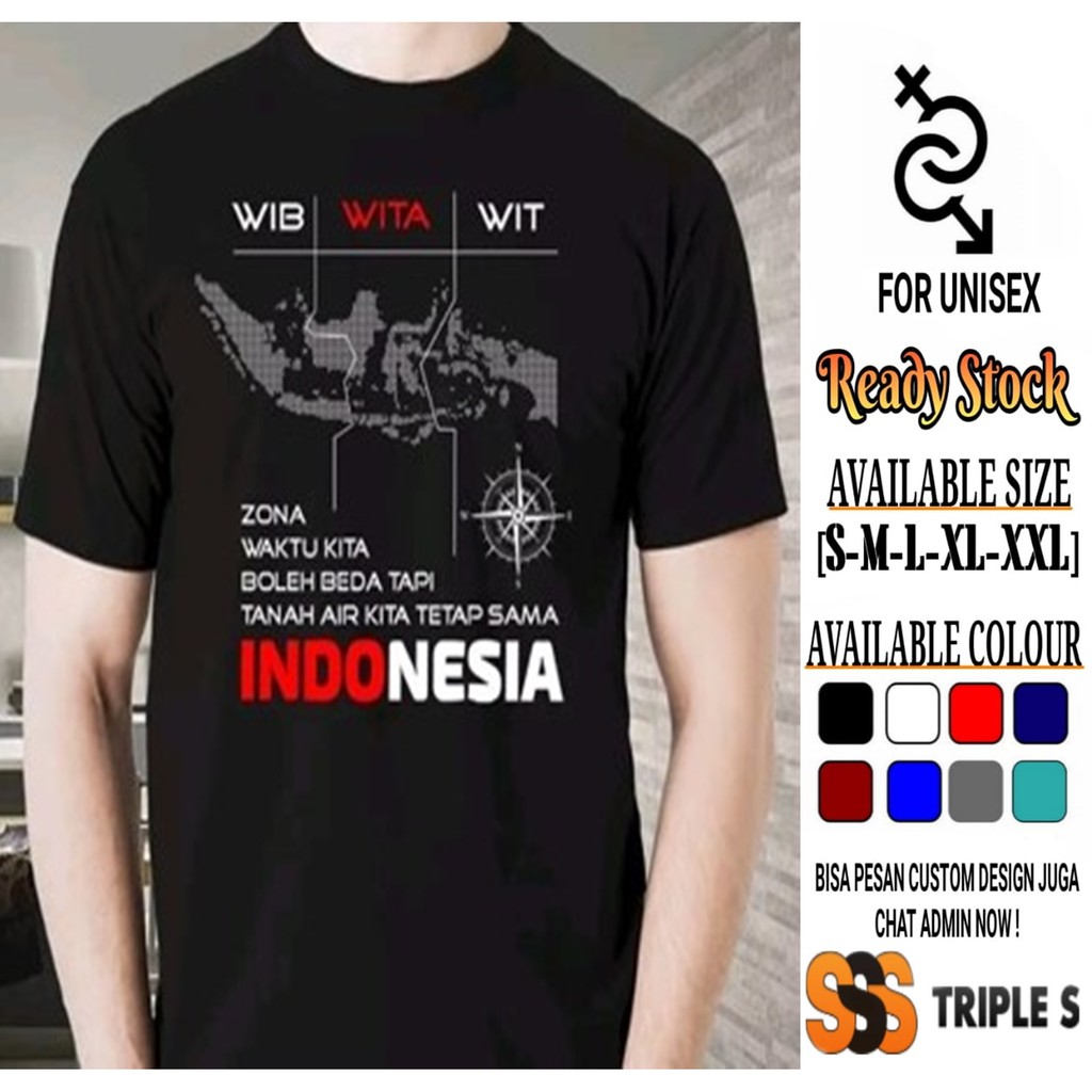 Kaos Zona Waktu Kita Boleh Beda Tapi Tanah Air Kita Tetap Indonesia Wib Wita Wit Kaos Indonesia