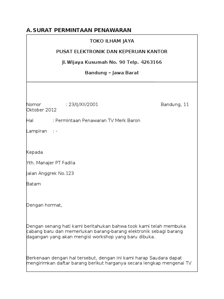Surat niaga merupakan salah satu jenis surat resmi yang isinya berhubungan dengan penawaran, jual beli barang atau jasa. Contoh surat pesanan barang berlangganan. Untuk mencapai hal ini, harus ada suatu media komunikasi yang bisa. Perdagangan memang sesutu yang sangat serius dan dijalani dengan benar sesuai prosedur, apalagi yang perdagangannya sudah kelas atas yang. Semoga dengan penjelasan tadi anda semakin paham akan surat niaga. Contoh surat bisnis, surat dinas, surat izin, surat kuasa, surat lamaran kerja, surat pemberitahuan, surat penawaran, surat pengunduran surat pemesanan ini salah satu surat bisnis yang dianggap penting, sebab dengan adanya surat ini proses jual beli atau pengiriman barang bisa. Dari segi format serta tulisan yang baik dan benar pada contoh surat, menjadikan acuan kredibilitas dari sang penulis. Contoh surat pemesanan barang perlengkapan belajar. Kalau sebelumnya saya sudah berbicara juga mengenai surat komplain tentang kerusakan pengiriman barang hari ini kita bahas mengenai surat pemesanan barang dalam hal ini yaitu alat perlengkapan belajar. Maka dari itu, di sini aku akan membahas pengertian surat niaga dan contoh surat niaga yang bisa kamu. Surat tersebut memuat penjelasan mengenai. Contoh surat niaga merupakan surat penting pada pembahasan contoh surat menurut gawe cv. Dalam kehidupan berbisnis, seorang pengusaha atau badan usaha tidak akan terlepas dengan adanya kegiatan transaksi ekonomi karena akan selalu berhubungan dan menjalin kerja sama dengan berbagai stakeholder.
